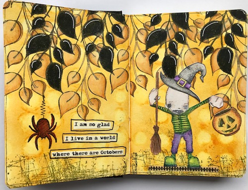 The new theme this month is Mixed Media with Autumnal hues and for my second project I mixed ink, paint and stamped elements to make a journal page. The fabulous quote is from Anne of Green Gables! I hope you'll join in with us this month, there's a prize for the winner if you do!