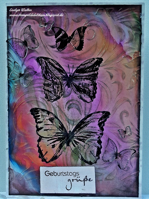 There can't be many crafters who haven't been inspired by Tim Holtz in one way or another. Whether it be his inks and paints, or his stamp sets and dies. I love his grunge, but I also love his pretty stamps, and these butterflies are one of my favourite sets. There's lots more pictures over on at Sue The Iron