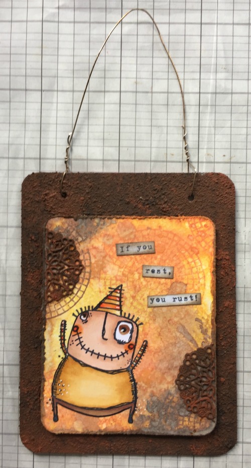 and welcome to a new fun challenge ! The lovely Evelyn chose the theme of RUST this month and boy did I have fun making this wallhanger :